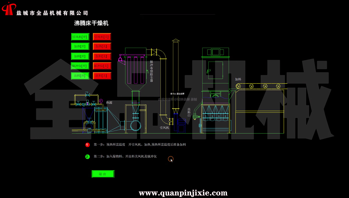 產(chǎn)品簡介:沸騰干燥,又稱流化床,它是由空氣過濾器、加熱器、沸騰床主機,旋風分離器,布袋除塵器、高壓離心風機、操作臺組成,由于干燥物料的性質不同,配套除塵設備時,可按需要考慮,可同時選擇旋風分離器、布袋除塵器,也可選擇其中一種。