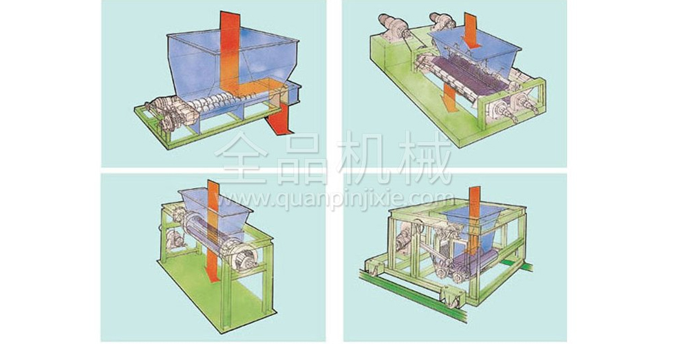 ◎輥式造粒機(jī): 由加料斗、二根輥?zhàn)雍驼駝泳W(wǎng)構(gòu)成。以增大物料面積為目的的制粒機(jī)。物料與振動網(wǎng)接觸,通過輥?zhàn)幼笥彝颠\(yùn)動強(qiáng)制將物料擠入網(wǎng)中,形成圓狀形的顆粒。