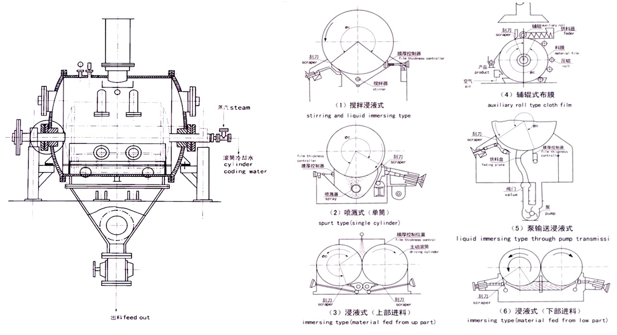 注:如客戶需要,可為客戶設(shè)計(jì)制造上部進(jìn)料雙滾筒干燥機(jī)。